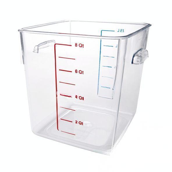 Recipiente cuadrado de almacenamiento de 7,6 litros que te permite ahorrar espacio en tu estantería al poder guardar un 25% más de alimentos comparado con recipientes redondos. Estos recipientes son fuertes, no se rompen fácilmente y se pueden limpiar en lavavajillas. Además, tienen marcadores de medida fáciles de leer para que puedas controlar tus provisiones de manera sencilla. Sus dimensiones son 22,2 x 21,1 x 22,2 cm, están hechos de Tritan copoliéster y pueden resistir temperaturas de -40ºC a +100ºC. Se ofrece una tapa de polietileno como accesorio opcional con la referencia FG650900.