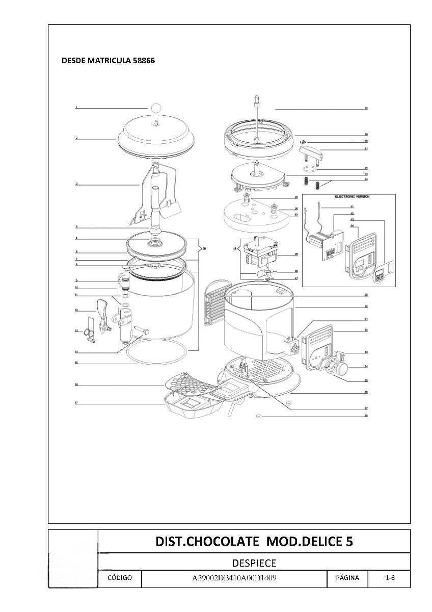 Este artículo es un pistón para la Chocolatera Ugolini Delice de 5 litros. Es la pieza número 9 del diagrama de la máquina. Pistón Chocolatera Ugolini Delice 5 litros